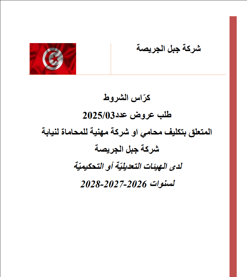 appel d'offre Cahier des Charges – Appel d’Offre N°03/2025 21 novembre 2025 Posted by user-SDD 21 Nov CC_type_ministere_avocat_devant_les_instance_regulation_arbitrage_AR__v3-1Télécharger